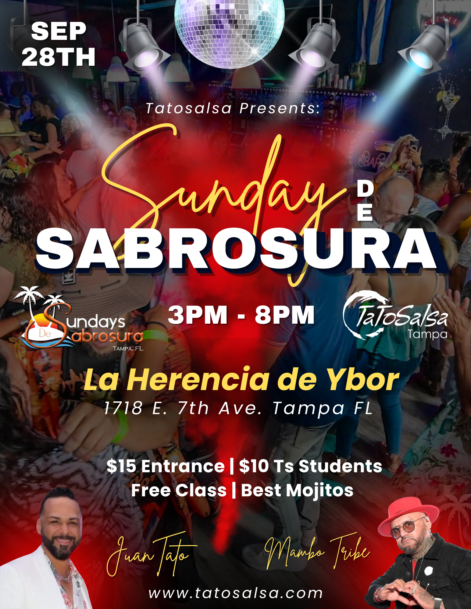 DISCLAIMER: ***Attend and dance at your own risk. TaToSalsa Inc, its owners and staff, La Herencia de Ybor, its owner and staff will not be held liable for any sickness, or injuries that may arise while attending this event. ***